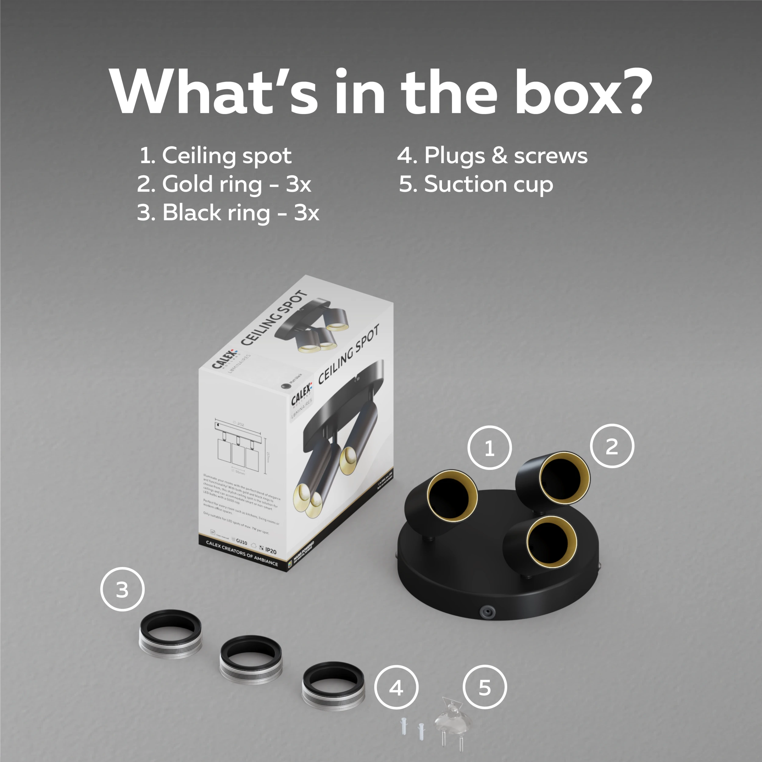 The housing of the Calex Spot is made from high-quality aluminum. This makes the lamp not only robust and durable but also stylish thanks to the refined black-gold finish. With an IP20 rating, this ceiling spotlight is ideal for indoor use.Easy Installation