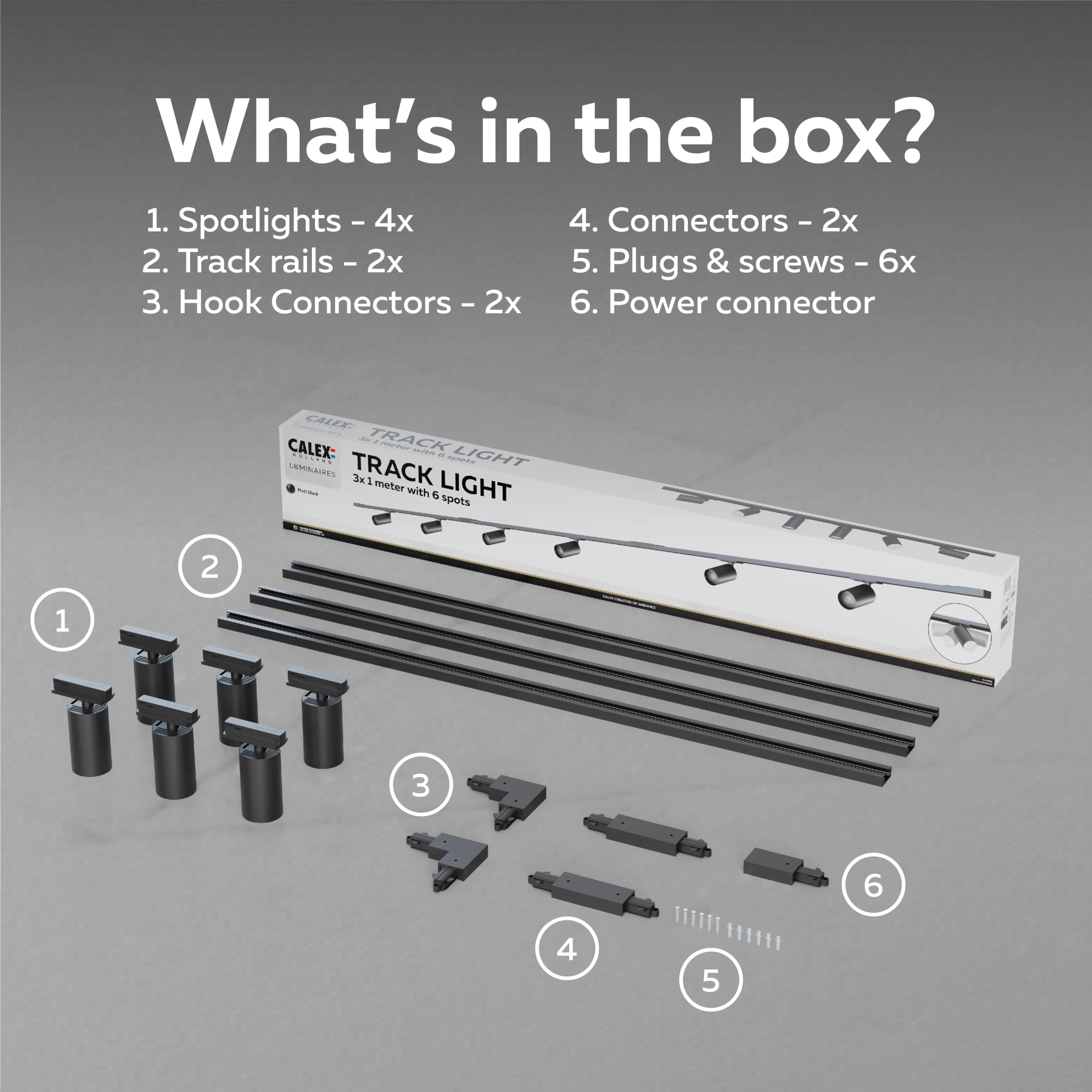 The Calex Tracklight 3 Meter with 6 Spots is the perfect choice for anyone looking for a stylish and versatile lighting system. With its elegant black finish and minimalist design, this tracklight fits perfectly into a modern living room. The 3-meter rail and six fixed spots allow you to easily create the right atmosphere. Direct the light onto the dining table for cozy dinners, highlight the seating area for extra comfort, or use it to subtly accentuate artwork and decorations. This way, your living room is always both atmospheric and functional.Flexibility and light quality