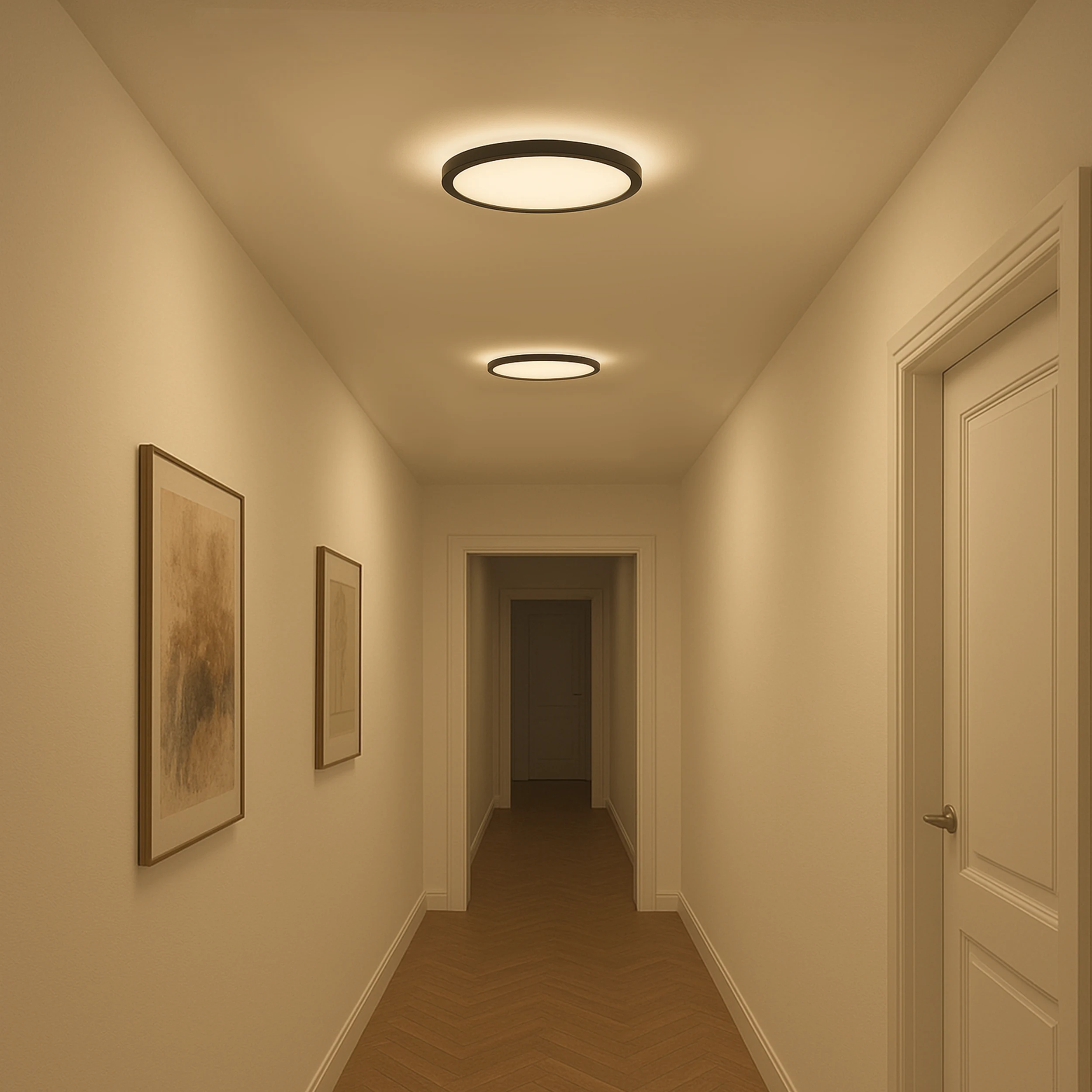 De Calex Halo Slimme Plafonnière (30cm) is een moderne en veelzijdige plafondlamp die jouw interieur verrijkt met stijl en slimme technologie. Dankzij het strakke zwarte design en de IP54 spatwaterdichte behuizing is deze lamp geschikt voor elke kamer. Van de woonkamer tot de badkamer.