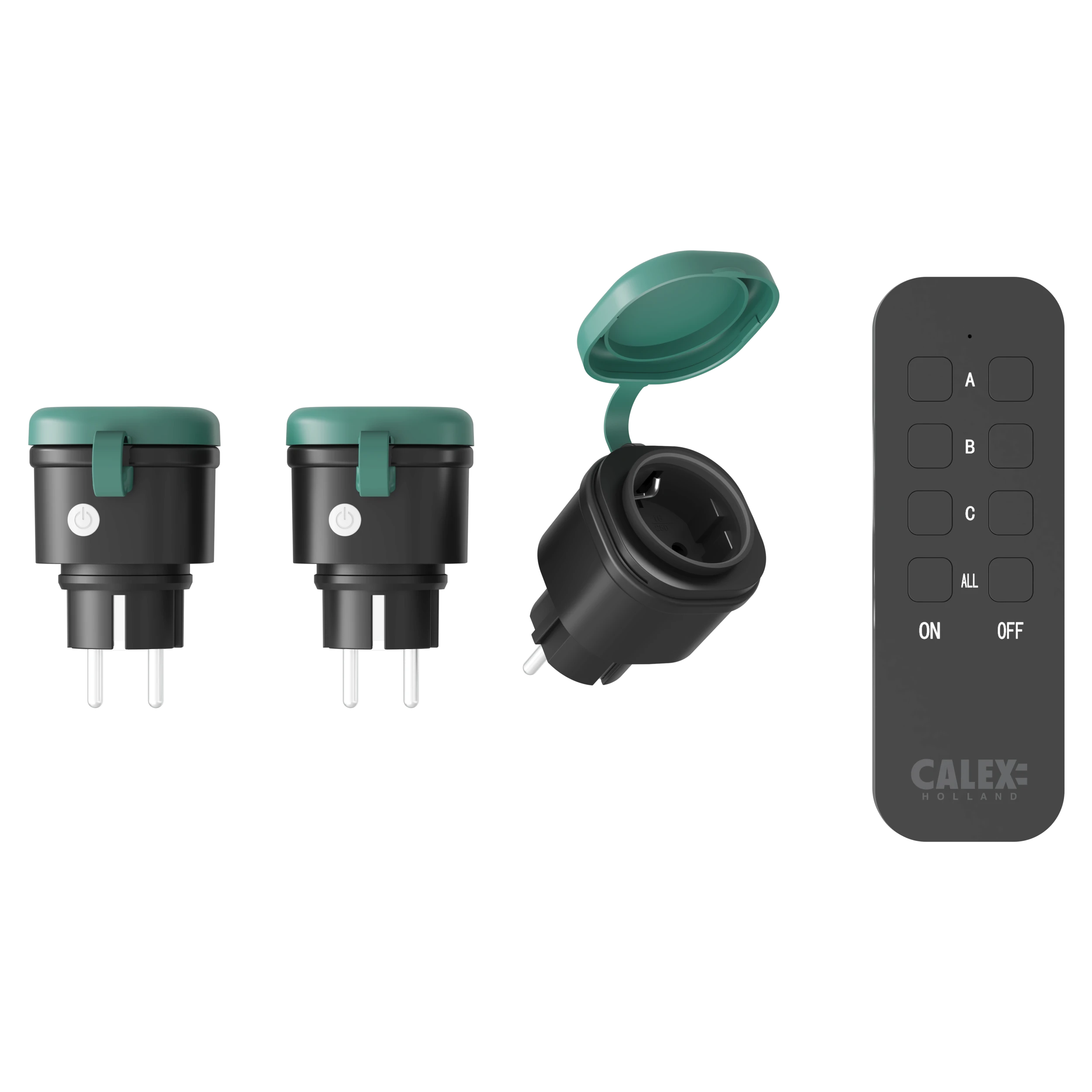Bedien je tuinverlichting, fonteinen of andere buiten apparaten eenvoudig met de Calex Smart Outdoor Remote Socket Set. Deze set bevat drie IP44 spat waterdichte stopcontacten en één afstandsbediening, waarmee je aangesloten apparaten met één klik op afstand kunt in- of uitschakelen.