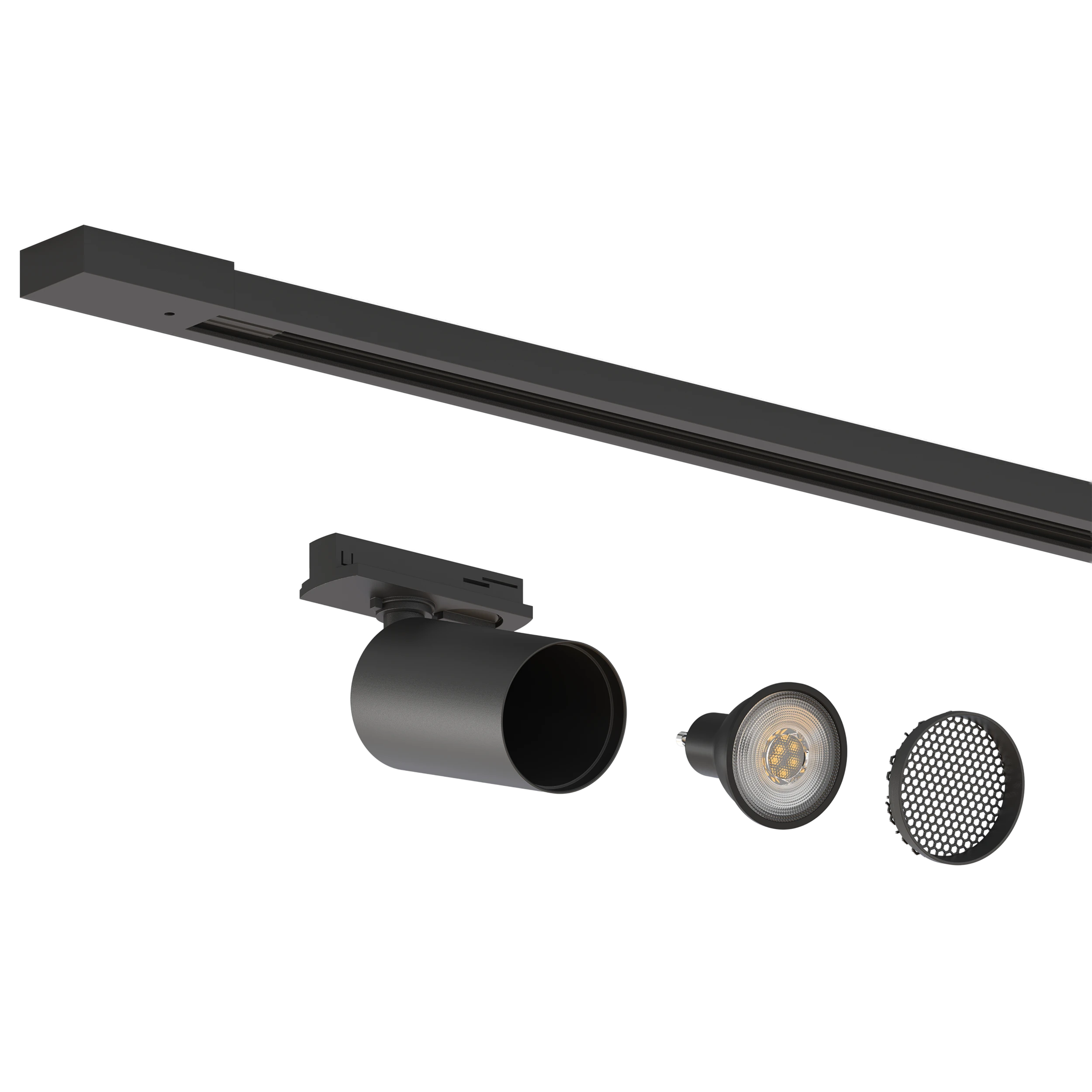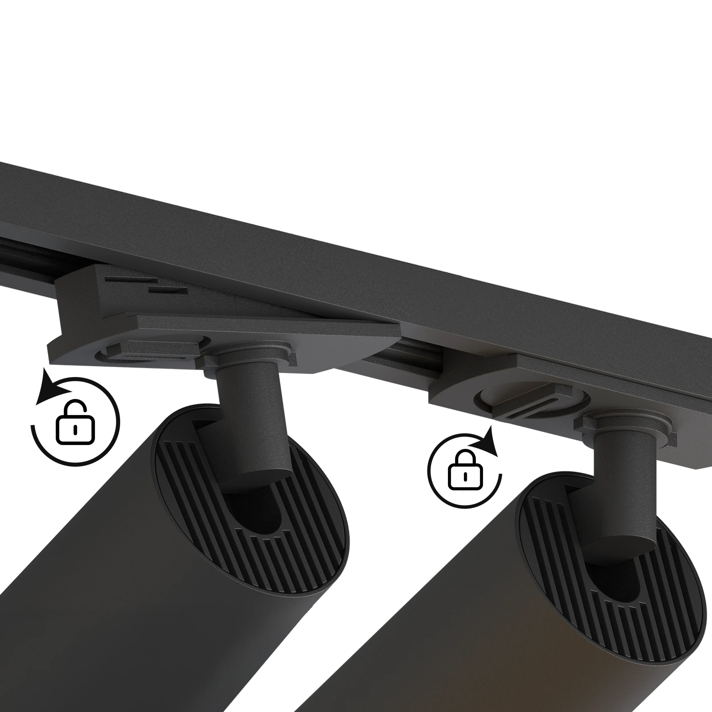 De behuizing is gemaakt van hoogwaardig aluminium, een materiaal dat bekendstaat om zijn sterkte en duurzaamheid. Dit maakt de tracklight niet alleen robuust, maar ook licht in gewicht en eenvoudig te installeren. De zwarte kleur zorgt voor een tijdloze uitstraling die zich moeiteloos laat combineren met verschillende interieurstijlen, van industrieel tot modern.Eenvoudige installatie en gebruik