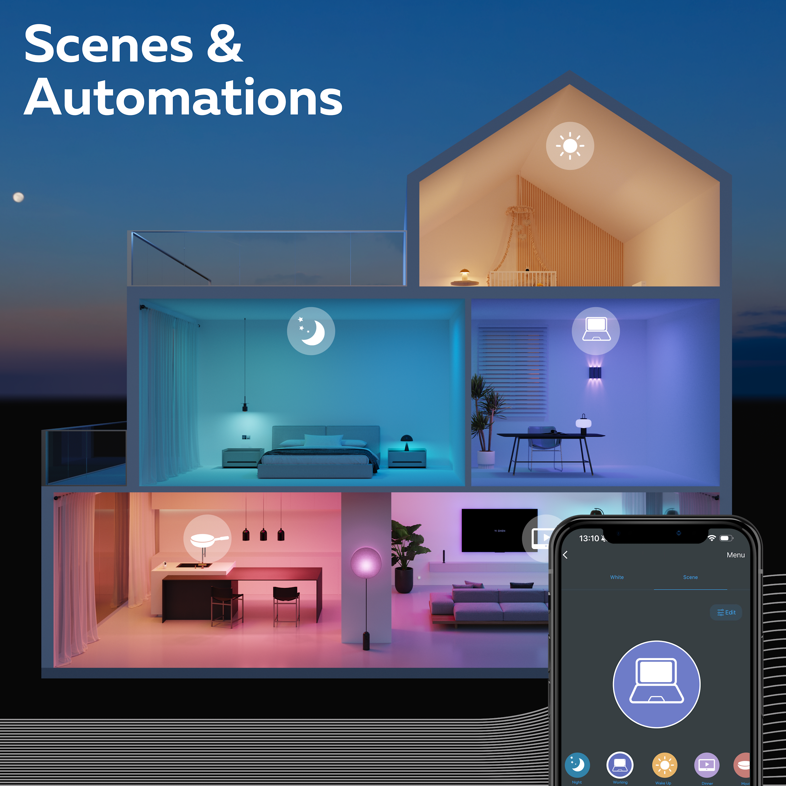 Spraakbesturing: Bedien de lamp met je stem via Amazon Alexa, Google Home Assistant of Siri Shortcuts.