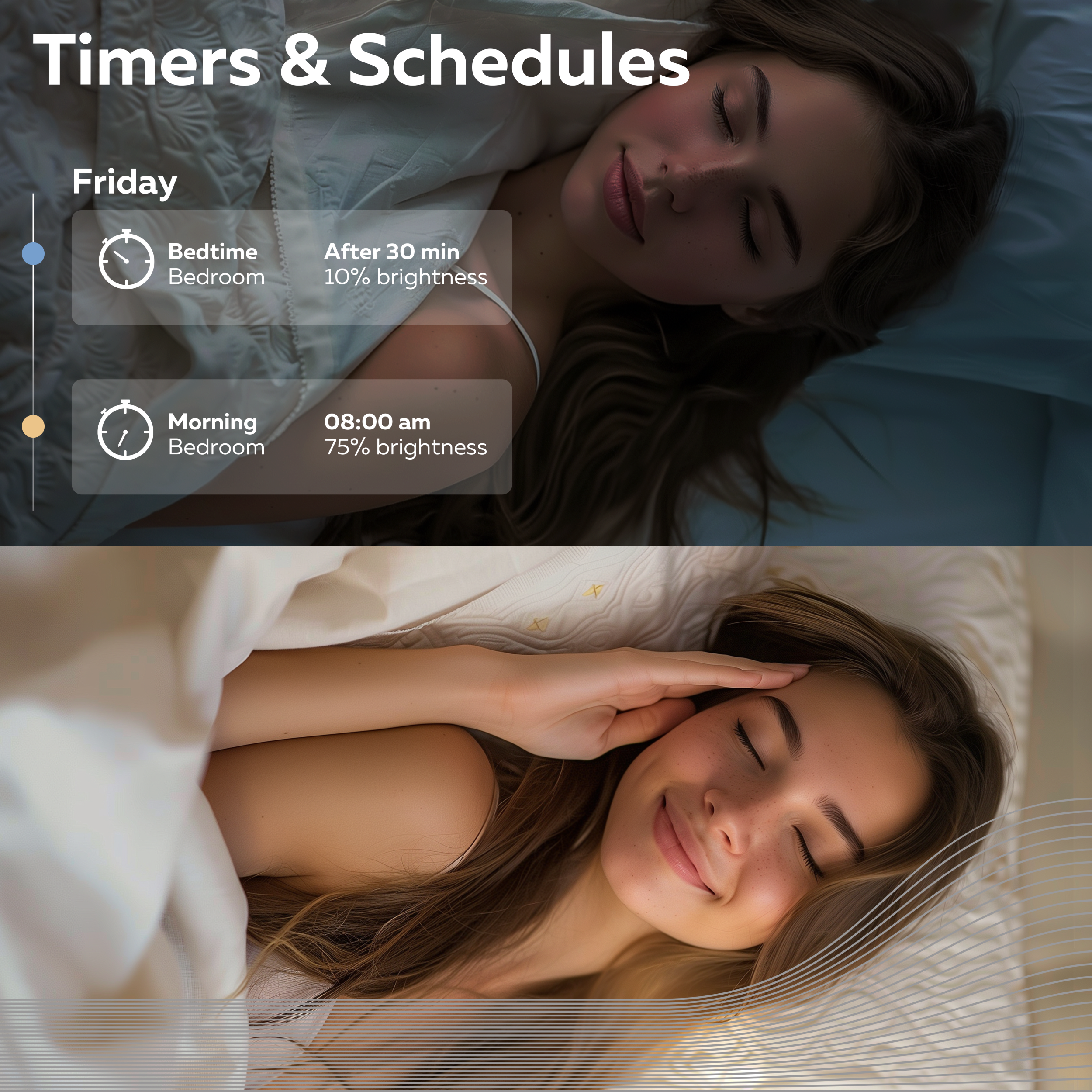 Energiezuinig: Bespaar energie door de lamp automatisch aan of uit te laten schakelen wanneer je niet thuis bent of bijvoorbeeld bij zonsopgang of zonsondergang.