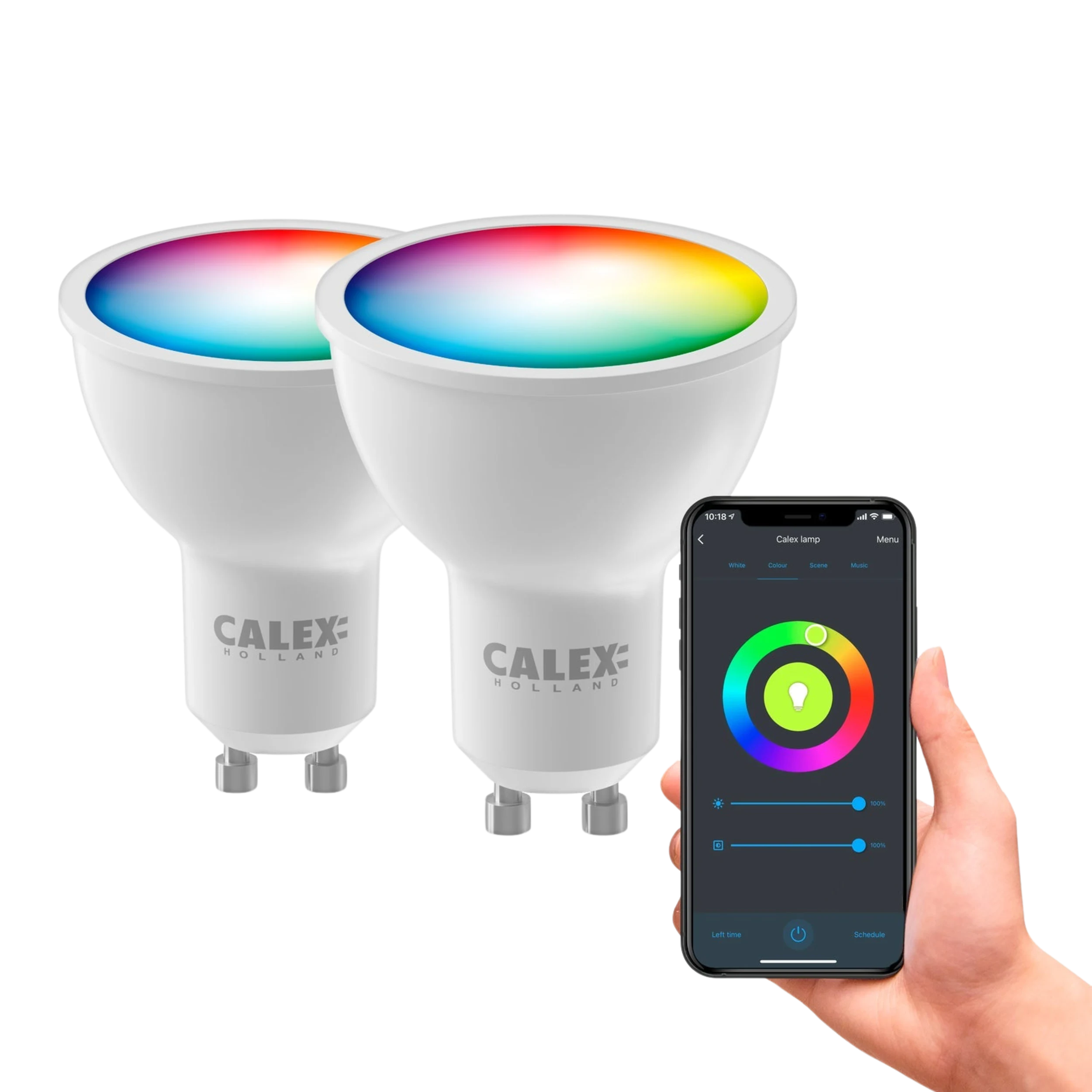 De Calex Smart Lamp, een WiFi LED-lamp met GU10-fitting, biedt een breed scala aan verlichtingsopties, van koel wit tot warm wit licht. Dankzij de extra kleurfunctie pas je moeiteloos de sfeer aan op je stemming of gelegenheid. Met een vermogen van 4,9W en een totale lichtopbrengst van 470 lumen levert deze slimme lamp een indrukwekkend bereik aan helderheid en intensiteit. De kleurtemperatuur varieert van 2200K tot 4000K, zodat je eenvoudig kunt schakelen van warm, gezellig licht naar helder, energiek licht via de app. Bovendien is de lamp dimbaar via de app, waardoor je nog meer controle hebt over je verlichtingsomgeving.