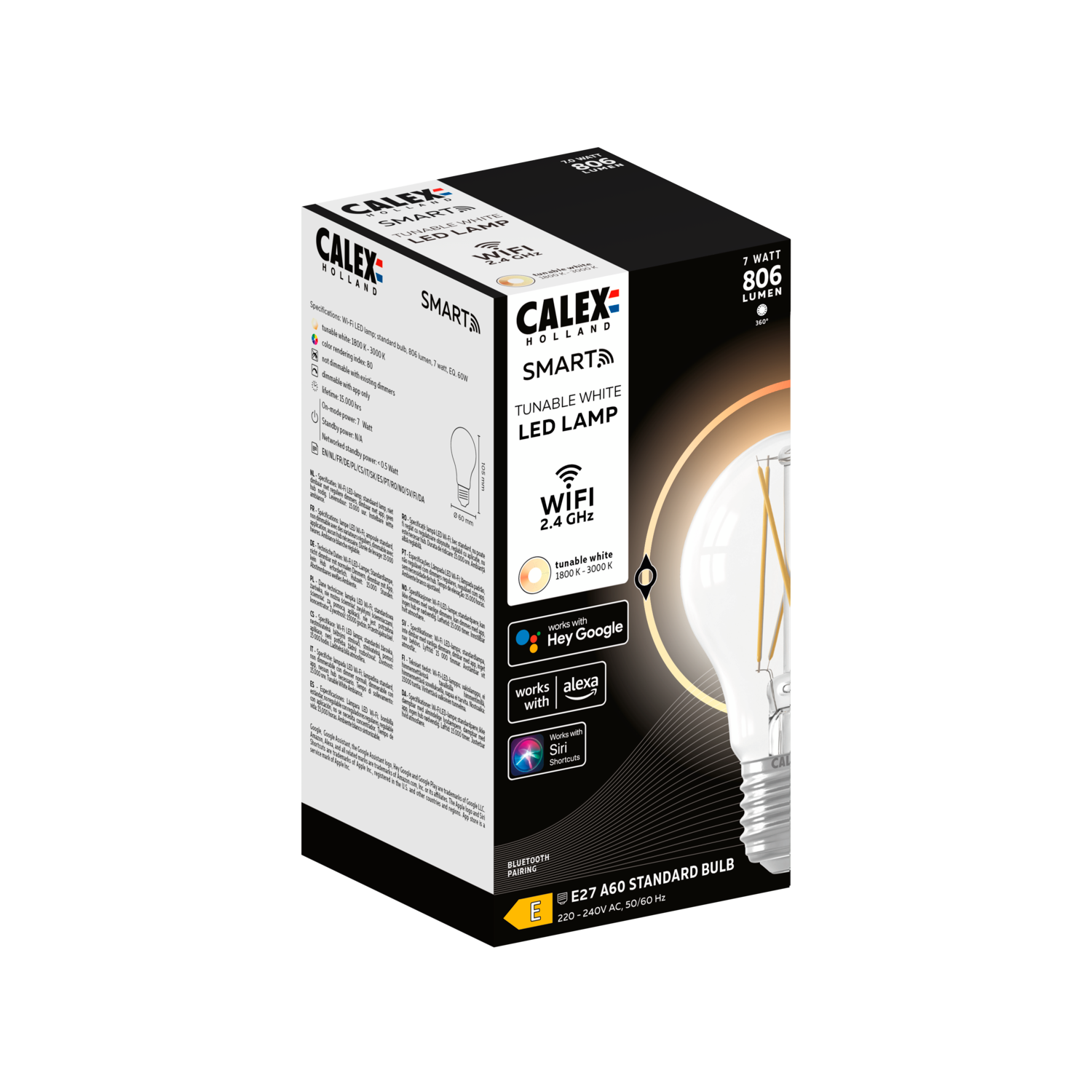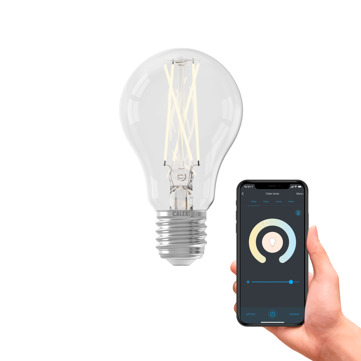 Deze mooie heldere smart lamp met B22 fitting past in de meeste armaturen en maakt het mogelijk om met de gratis Calex app de kleurtemperatuur (1800-3000K) aan te passen. Verander eenvoudig de lichtsterkte van helder en feller licht naar gedimd warmer omgevingslicht voor gezellige avonden. Stel timers en routines in om wooncomfort te optimaliseren. Let op! Deze smart lampen werken op een normale wandschakelaar en via wifi. Niet op een dimmerschakelaar. Via de Calex smart afstandsbediening en de gratis Calex app kan je deze lampen met wifi verbinden en instellen naar de gewenste sfeer. USP's - Verbinding via wifi - Eenvoudige installatie - Gebruiksklaar in 3 simpele stappen - CCT: 1800-3000K (witkleur) - Dimbaar via app en afstandsbediening