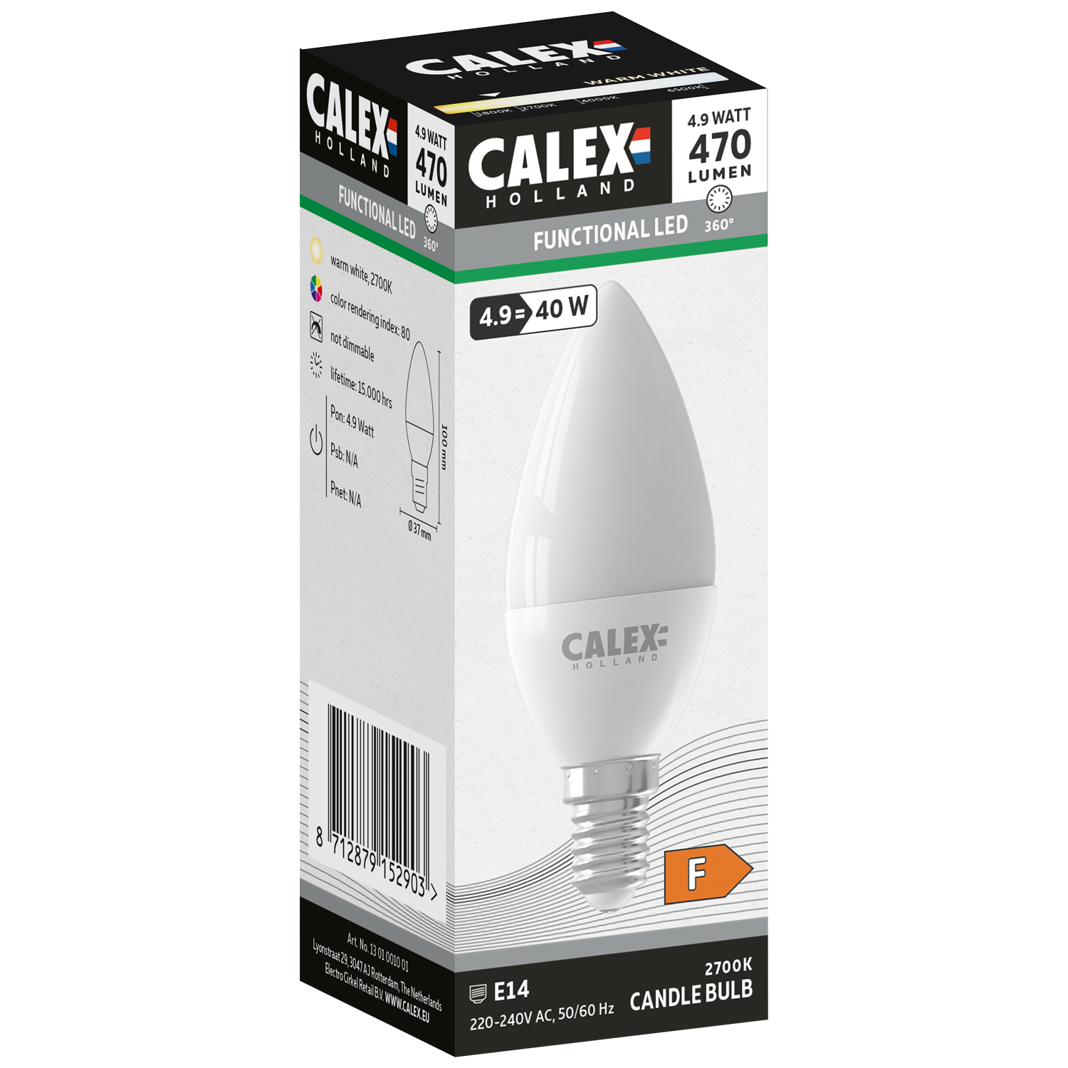 De Calex SMD LED Lamp B35 Wit is een stijlvolle kaarsvormige lamp die perfect past in open armaturen of kroonluchters. Het matte glas zorgt voor een rustgevende, gelijkmatige lichtverdeling.
