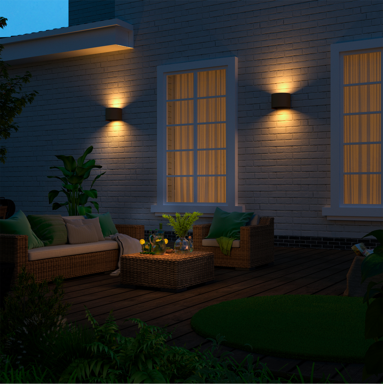 De Calex LED Wandlamp wordt geleverd met ingebouwde lichtbronnen, uitgerust met hoogwaardige LED-chips aan zowel de boven- als onderzijde van de lamp. Dit dubbele lichteffect benadrukt het unieke Up Down Light-concept en voegt een luxe uitstraling toe aan elke gevel. De lichtbron heeft een levensduur van 30.000 uur.Instelbare lichtopbrengst