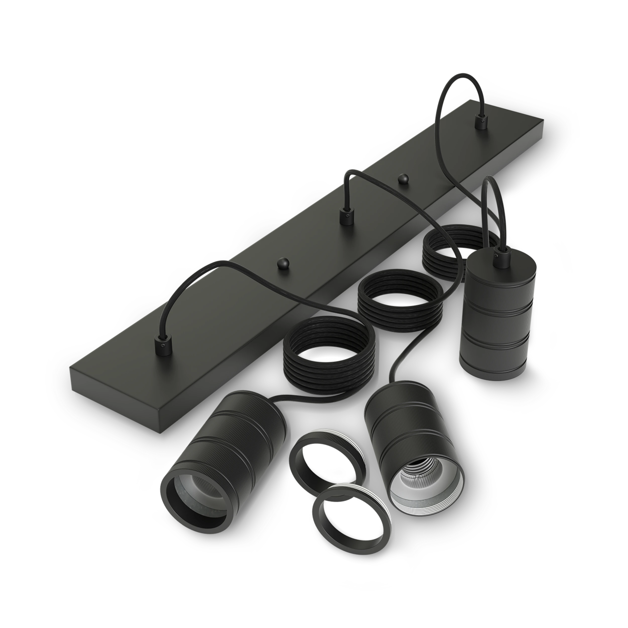 The durable aluminium ceiling plate and high-quality 2-meter textile cords provide both strength and flexibility. The black fittings offer a refined finish that highlights your chosen light sources beautifully.