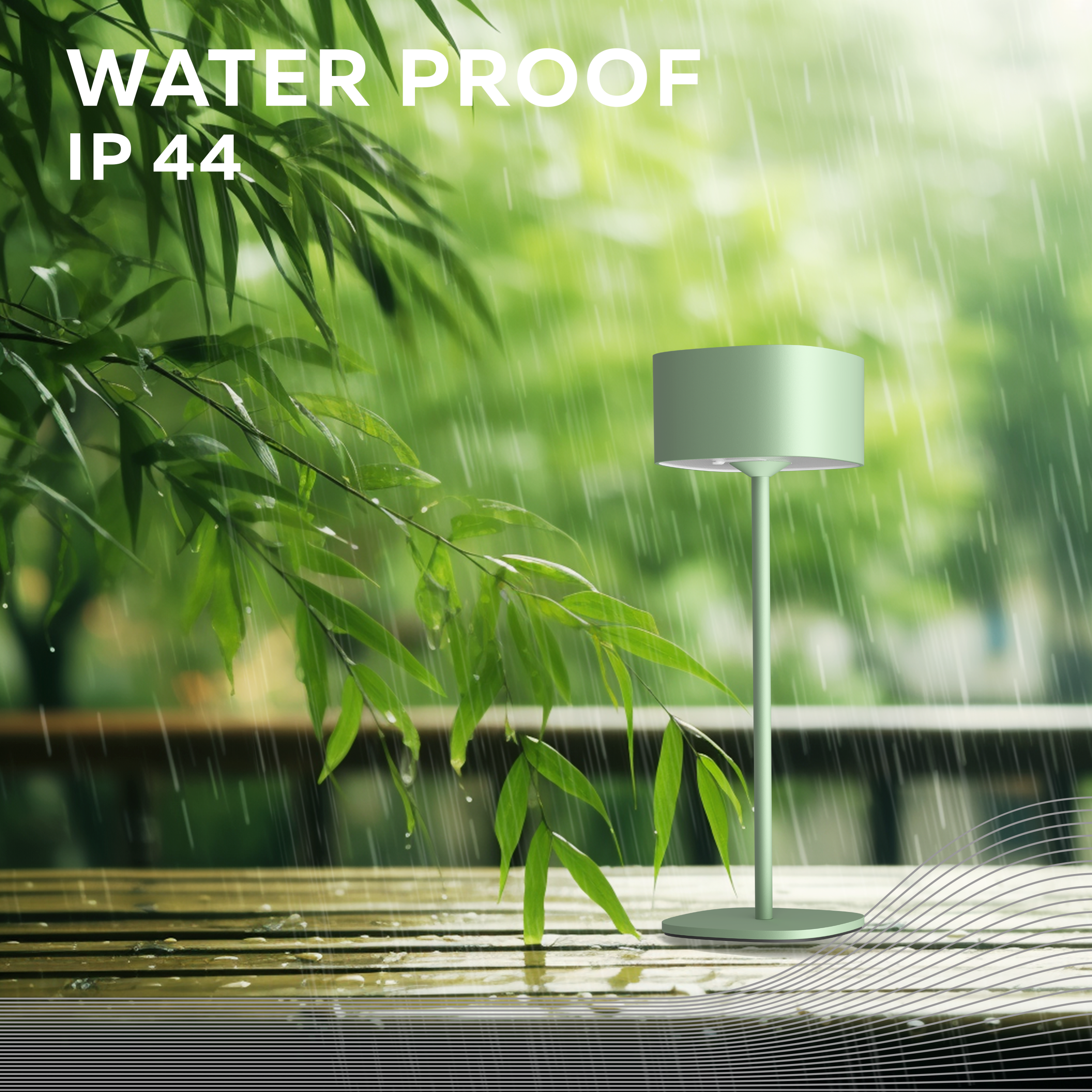 With its IP44 certification, this lamp is resistant to moisture and rain, making it safe to use on terraces, balconies, or during camping trips. The sturdy casing and high-quality finish ensure a long lifespan.Stable & Compact Design