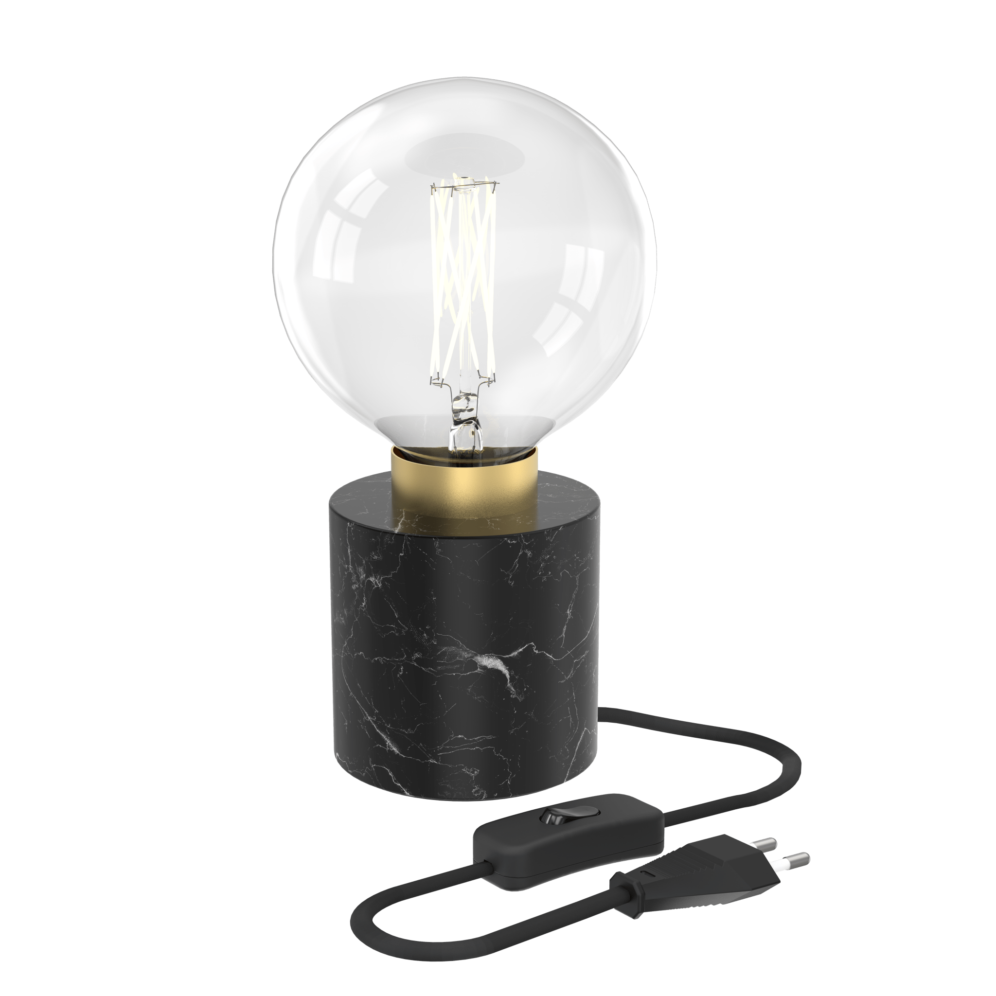 Illuminate your interior with the round marble table lamp from the Calex Black & Gold collection. Combine products and complete the look for a complete luxurious ambiance experience. Creating an elegant style has never been easier! The marble material and the gold ring around the fitting make this table block a real must-have in your home. This marble table block has a diameter of 85mm and a height of 85mm. With 1.8m cable. This table lamp fits a lamp with an E27 fitting, also known as a large fitting.